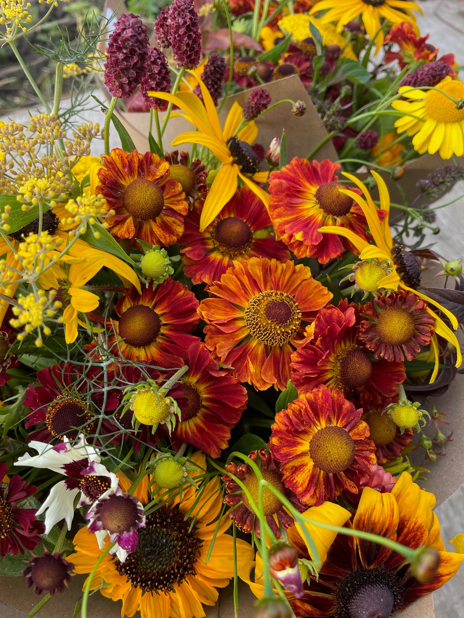 Flower varieties change throughout the season, making each bouquet a unique reflection of what's growing right now.